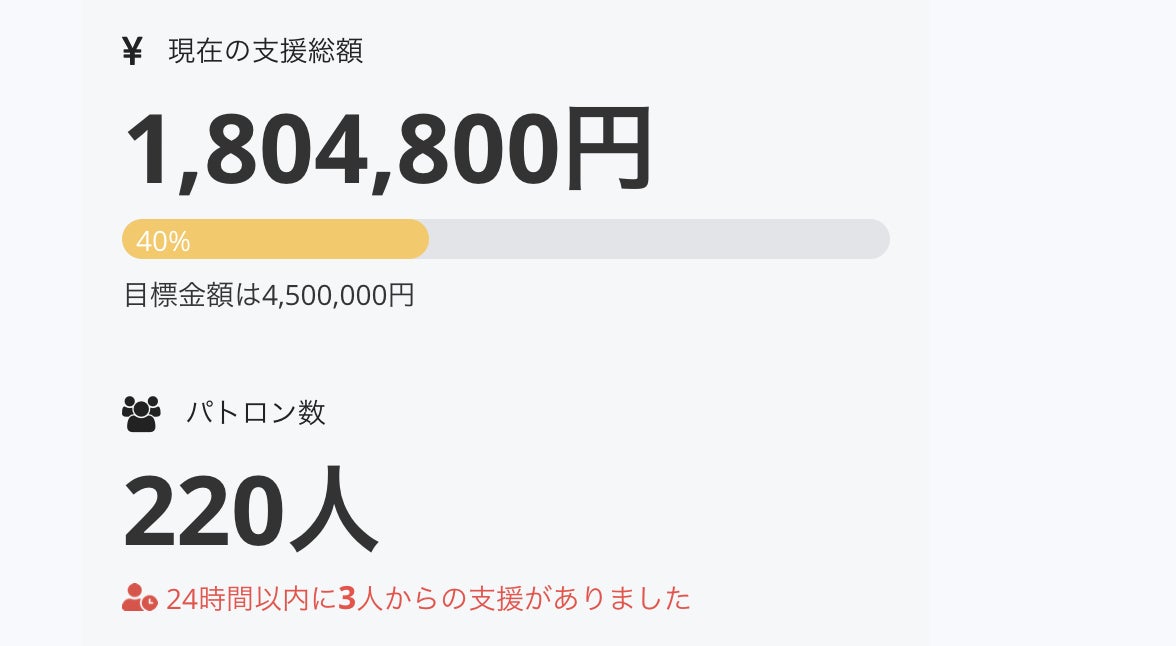 220名様からのご支援と、沢山の方の宣伝・拡散のおかげで移転が実現します。。