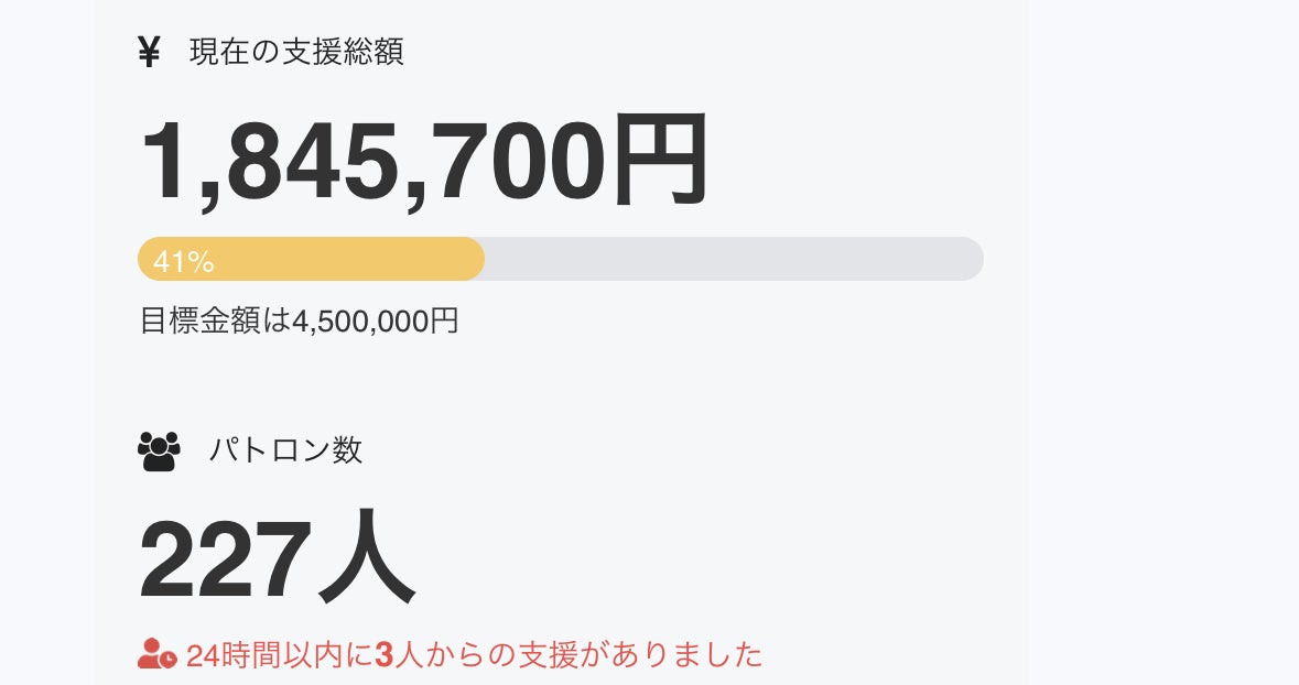 今現状でこのプロジェクトも200万円近く集まっていますので、最低限のお金は準備ができたという状況です。本当にありがとうございます。