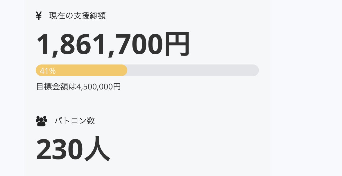 ありがとうございます!本当に凄いです!!!今日はついに支援者が230名になりました!!