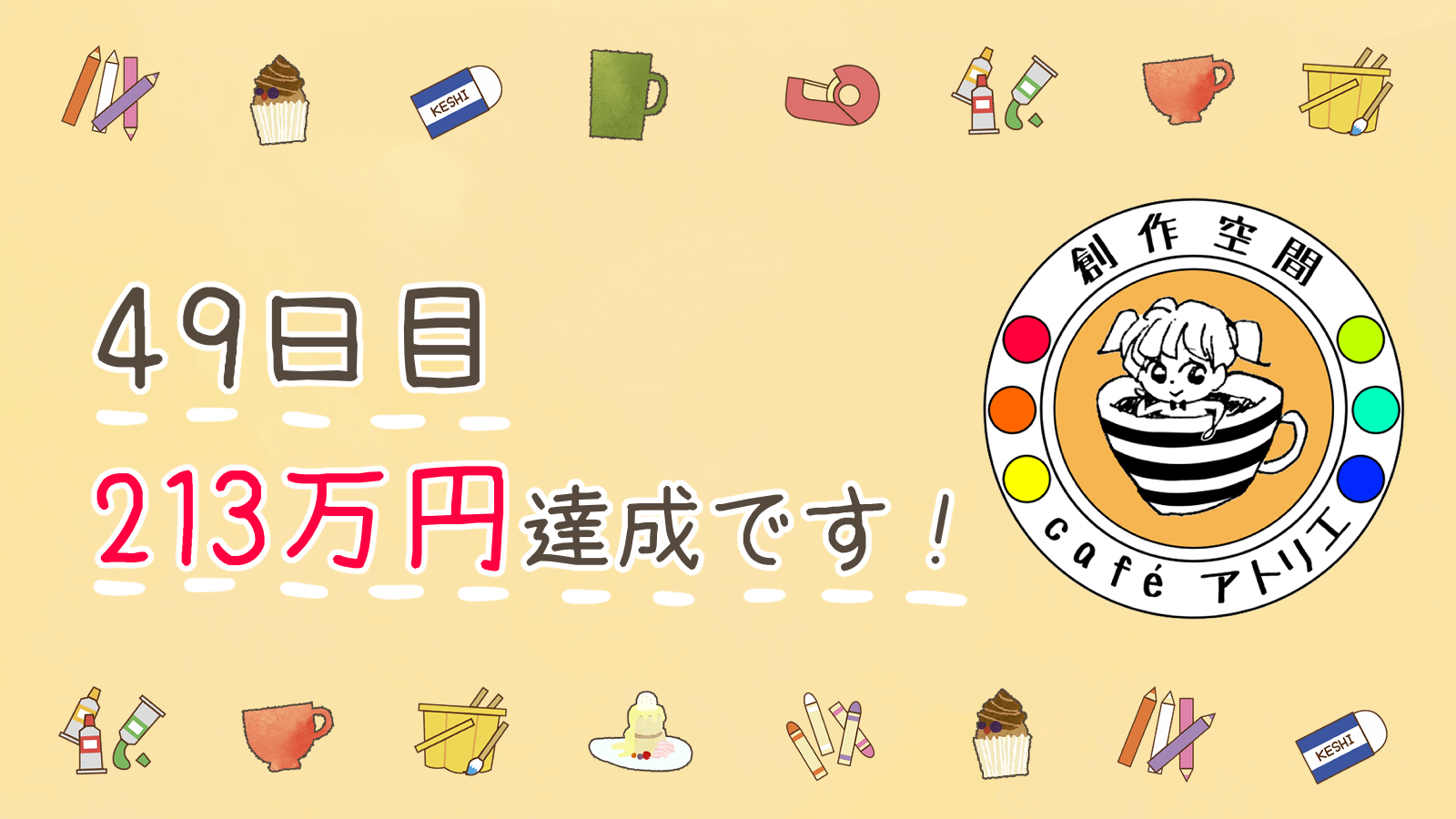 ありがとうございます!!!今日も新たにご支援いただきまして、支援者数267名、支援金額213万円となりました!昨日のお話ですが、以前よく来てくださっていた作家様が1年ぶりくらいに遊びに来てくださいました!!なんと初のイラスト本を作られたとのことで、献本いただきました。その方はほんの2〜3年前から絵を描き始めたということで、最初のころに当店を利用してくださっていました(*^^*)こうやって日々の創作物が形になると感動します!ご来店くださっている作家様方の活動がどんどん進んでいくのをみていると、私もとても刺激になります。趣味で創作する人も、プロを目指す人も、分け隔てなくのびのびと創作を楽しめるお店であり続けたいなと思った出来事でした。クラウドファンディング終了までのこり10日!もうちょっとで50%というところです…!これだけ集まったのも奇跡と思いますが、どうか最後までよろしくお願いいたします。