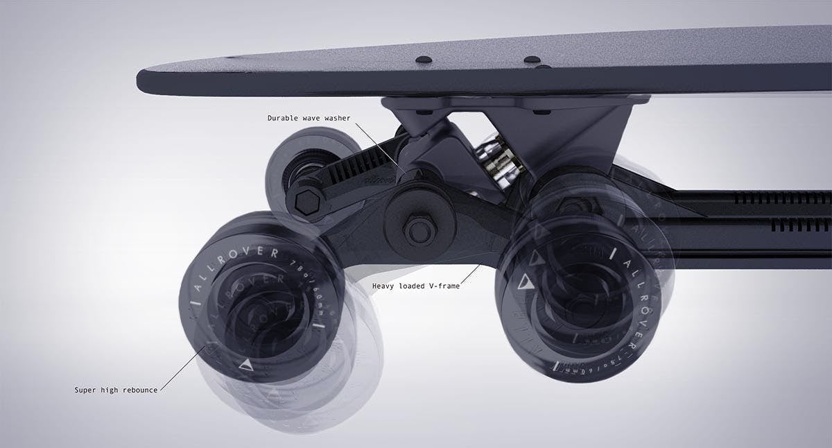 - ・エンプラPOM樹脂 (ポリアセタール) 仕様のボトムとサスペンションは、スムーズにストレスフリーのスケートを実現。