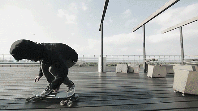 ステアローバーは平地や坂では普通のロングボードと同じですが、凹凸の地面(例えば点字ブロック、階段、砂利道)では、どんなレベルの方でもそのまま滑れてしまうところが最大の違いになります。