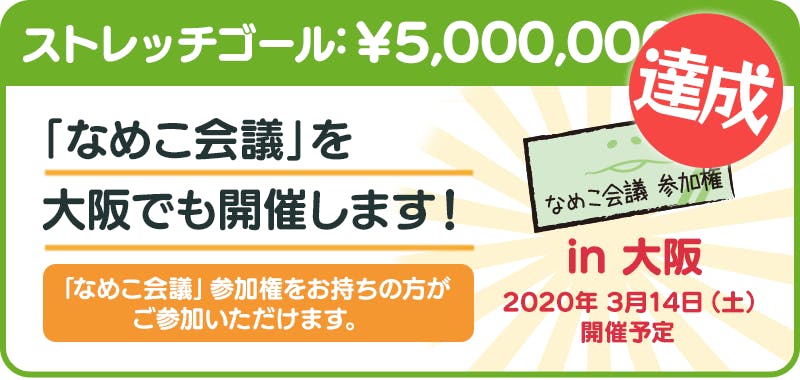 【達成しました!】「なめこ10周年なにする会議」を大阪でも開催します。会議の詳細は「リターンについて」ご確認ください。