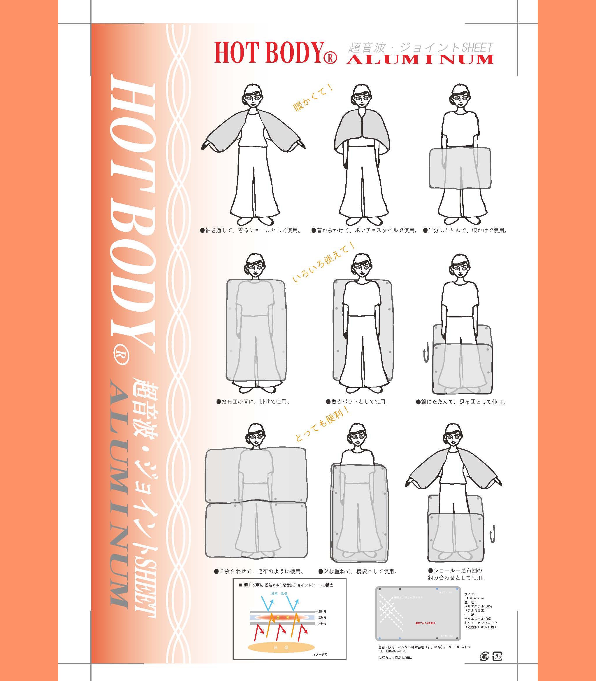 沢山のご支援ありがとうございます。感謝の気持ちをこめて、何か出来ないかと思い、HOT BODY超音波アルミジョイントマルチケットを45%OFFで、追加リターンさせていただきました。こちらも、弊社の限定オリジナル商品です。アルミシート生地と中綿の3層構造を超音波ピンソニック加工(針穴の無いノンキルト縫製)し、周囲にある8ヶ所のジョイントホックで9通りの使い方ができます。このマルチシート1枚で、冷気を遮断して保温力がアップしひざ掛け、就寝時、ガウン替わりに、アウトドアに、車内、屋外、屋内に限らず、いろんな場面で便利に使えます。以上、よろしくお願いいたします。