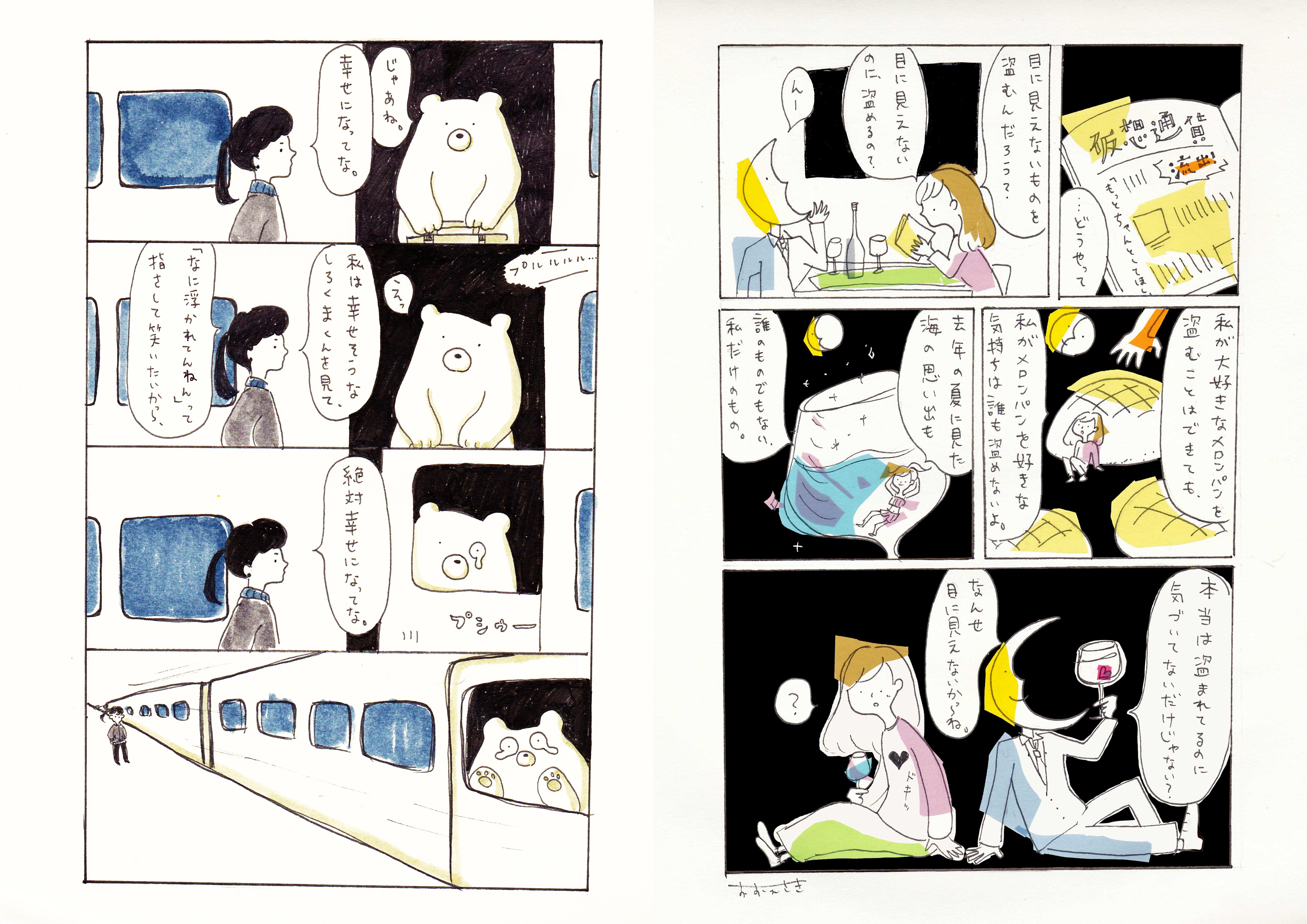 普段は、ちょっと不思議な日常を切り取ったイラストや、自分なりのゆるい哲学を表現したマンガを描いて活動しています。