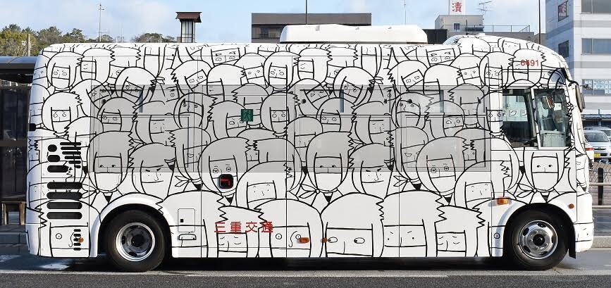 いま伊賀の街では、わたしががデザインした忍者バスが運行中。