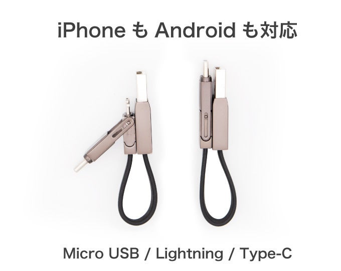 一般的なケーブルよりも圧倒的に短く、しかもこれ1つでAndroidもiPhoneのスマホを始め各種アクセサリーにも対応可能。