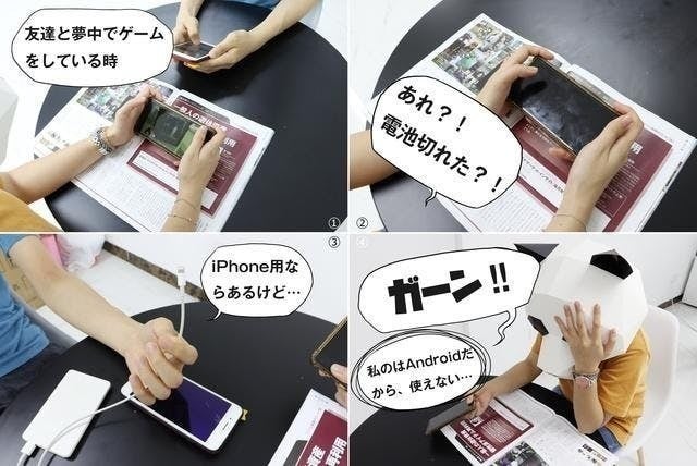 開発者である私自身が各種ケーブルには「無駄に長い」「かさばる」「すぐ絡む」「断線しやすい」「持ち歩くのが面倒」「機種が違う友達とシェアできないことが多い」と不便に感じる場面がありました。