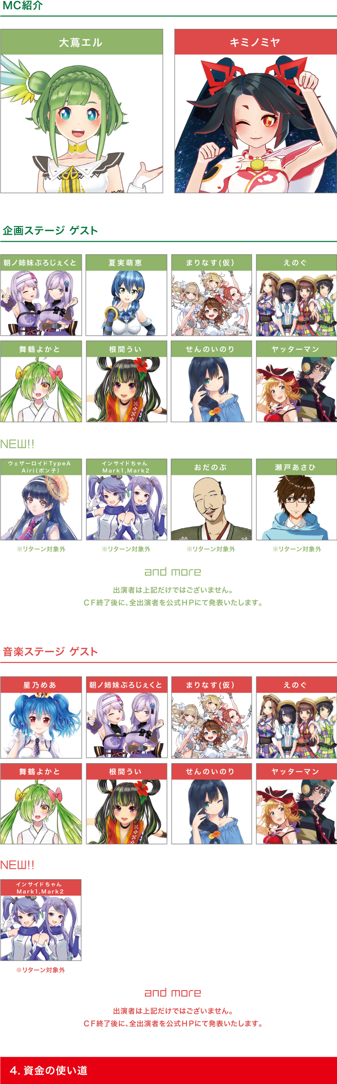 なお、成立額を超過した金額に応じて、ステージの追加出演者はもちろん、