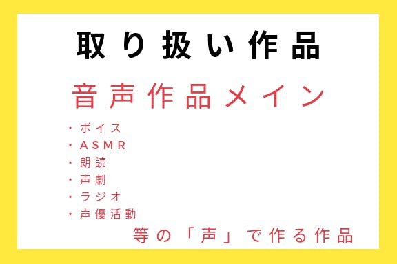 音声作品をメインに取り扱う事を決めた理由が、動画や生放送、配信のプラットフォームは多岐にわたるものがあり、そのジャンルに関しては、それらを利用するべきだと思います。