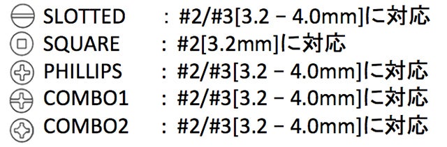 マイナスだけでなく、プラスやスクウェアー等のネジタイプに対応。