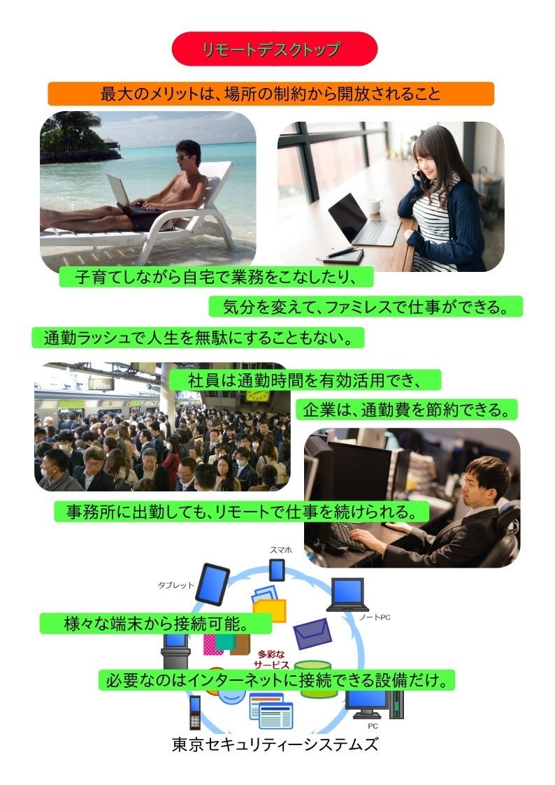 これらの課題を一挙に解決する手段のひとつがリモートデスクトップです。