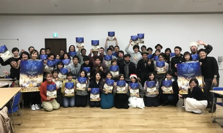 クリスマスマーケット熊本の開催趣旨に賛同し、集ってくれている仲間たち。大学生から社会人、主婦の方まで、約100名の実行委員チームで企画・運営しています。