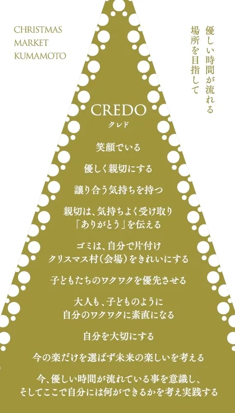 そんな、一瞬でも、少しの時間でも、世界で一番やさしい村を熊本に出現させたい。熊本ならではの優しいクリクマを10年先まで続く風物詩に育てていきたい。そんな想いがあります。