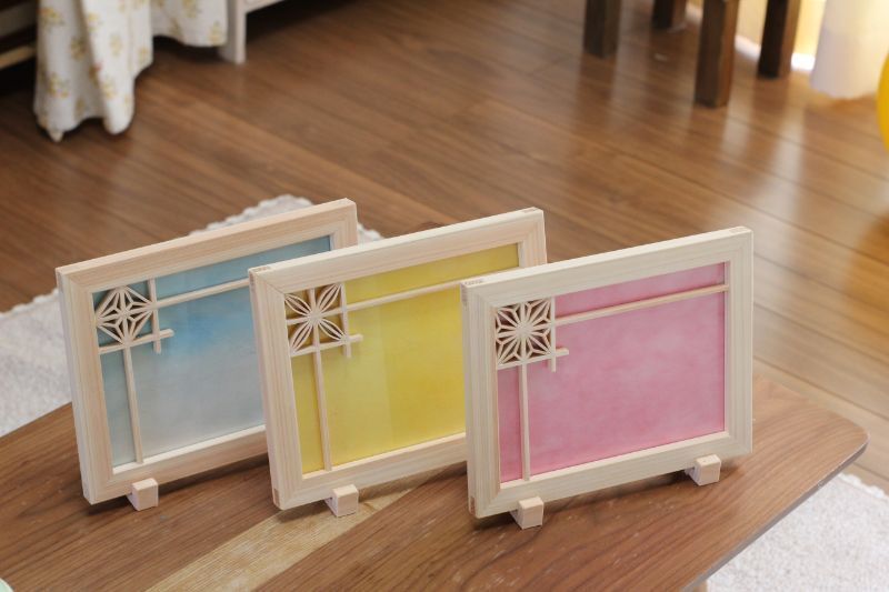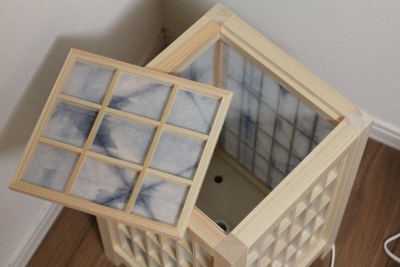 組子の飾りがあるのでどうしても裏の板が見えてしまうので、高知県の伝統工芸品でもある土佐和紙を貼り付けました。