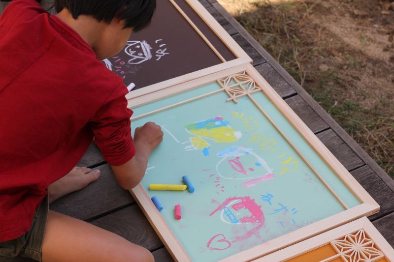 黒板もカラフルな黒板塗料を使用して和風に偏りすぎないデザインにしたつもりです。