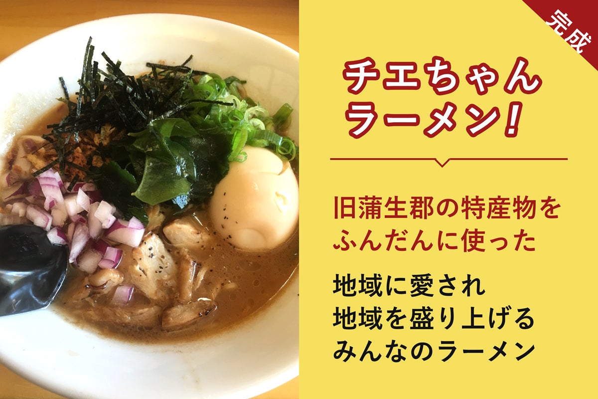旧蒲生郡に根付いた「地域の方に馴染みある味」で、このラーメンをきっかけに地域交流や活性化につなげたい…!完成した≪チエちゃんラーメン≫ぜひご賞味くださいませ!