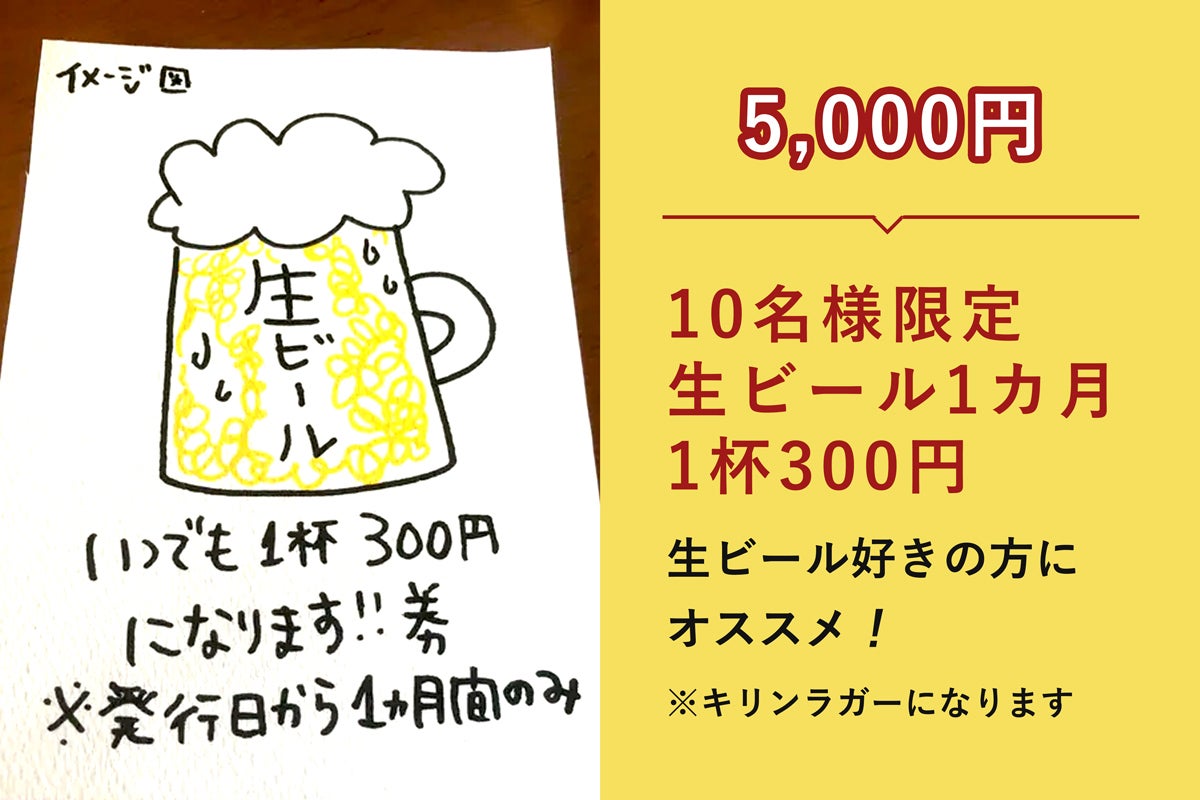 発行日から1か月間生ビールはいつでも1杯300円で飲んでいただけます。