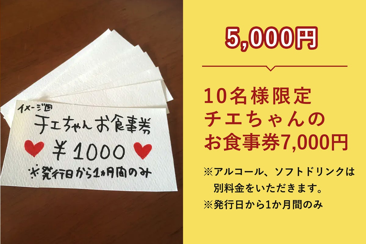 ▼5,000円:チエちゃんで使えるお食事券7,000円分