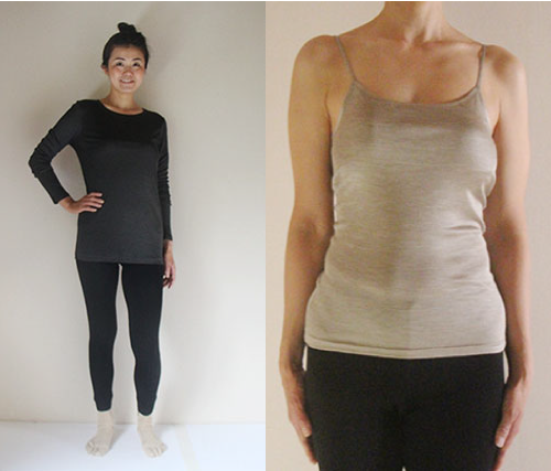 (※モデルは身長163㎝体重52キロ。写真では長袖TシャツのデニムM、ウールレギンス黒XS,キャミソールはXSを着ています)