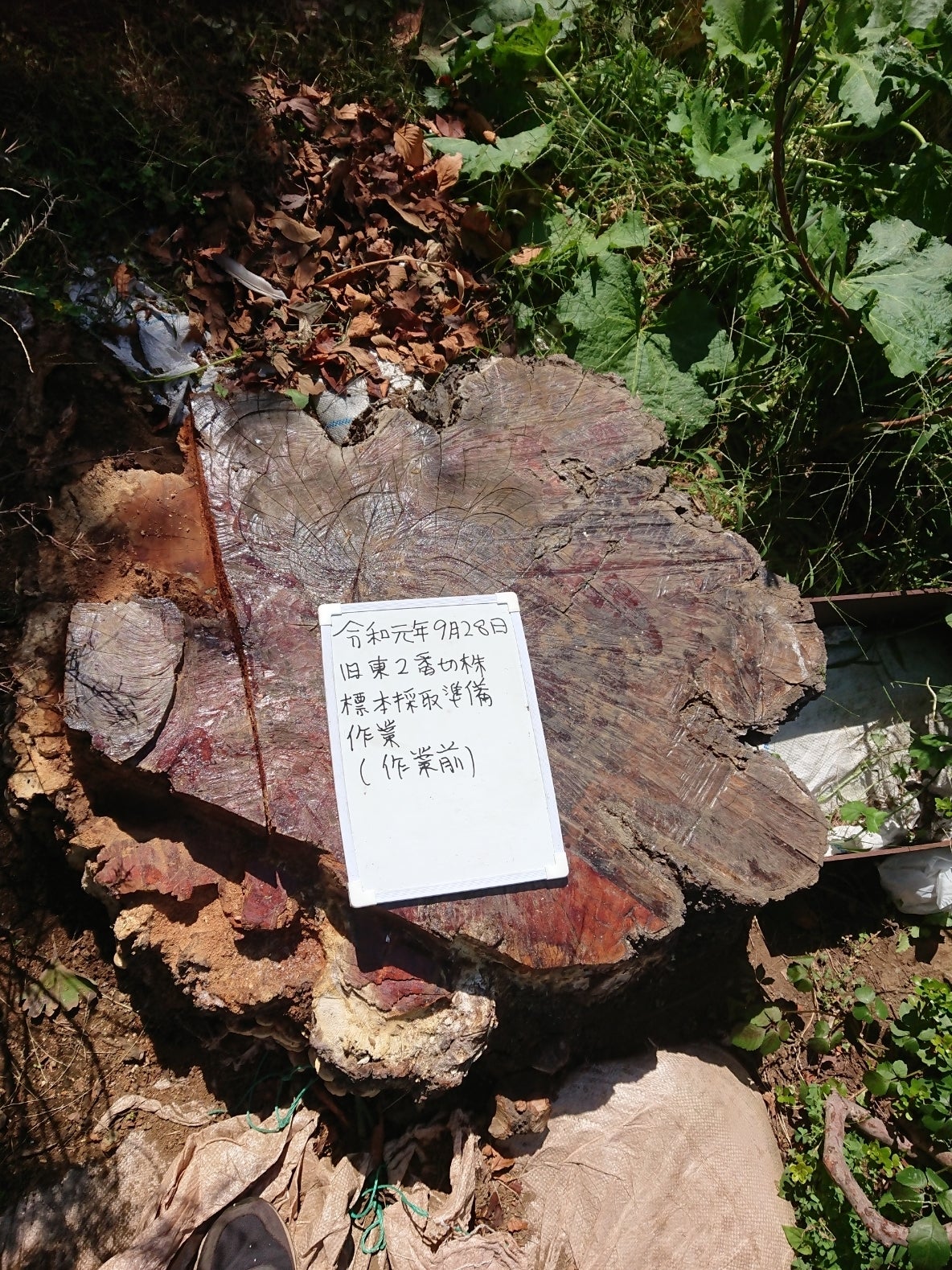 2019/09/28 23:00皆様、今晩は。今日は先日に引き続き国立市にある大学通りで桜の切り株から標本を取る作業をしました。 最初にしたのは、切り株に生えてしまったキノコを菌糸が広がっていると思われる範囲ごと電動ノコギリを使って切りました。 今回、始めて電動ノコギリを使いましたが手で引くノコギリで半日以上かかる作業が20分程で切れました。その代り振動がすごいですが・・・。 上の写真は切った後の様子です。帰宅した後に毎回キノコの臭いが靴やズボンに移ってしまって困っていましたがこれでしばらく安心して作業ができます。 電動ノコギリは、とてもパワフルですが切り株を水平に切れないので手持ちのノコギリでひたすら輪切りにして行きました。ただ、このノコギリは20センチ位の長さしかないので写真に向かって左上のところにホールソーで穴を開けて手持ちのノコギリの歯が奥まで届かなくても横方向に切っていけるようにしました。今日中に終わりたかったのですが、バッテリーがなくなりましたので明日続きをすることにしました。 帰宅後は、今までの作業で取った標本がキノコの菌糸で腐らないように漬けているポリエチレングリコールが入った容器に紫外線を当てる装置に紫外線LEDを追加する作業をしました。予算の関係でポリエチレングリコールは入手できた量が少ないので漬けている溶液は高濃度ではなく20パーセント位なのでとにかく今は腐らないようにして11月の市民祭まで頑張って保存していくつもりです。 桜の研究と富士山での調査が両立できる状態に早くなりたいです。 もっと見る