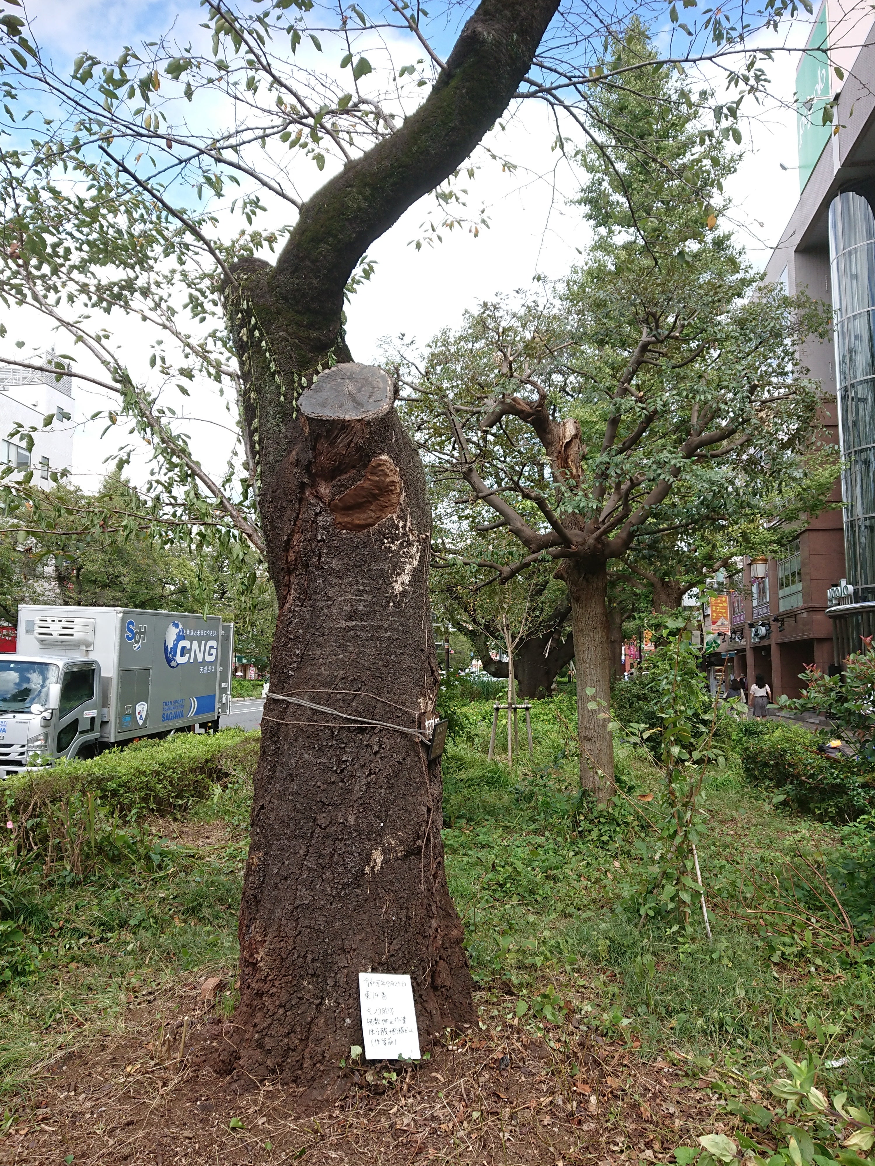 皆様、こんにちは。朝晩、だいぶ涼しくなってきましたが如何お過ごしでしょうか? 今週末から来週にかけてまた天気が悪くなる予報で富士山にはいけないので今週は国立市内での桜の調査をメインに活動しています。 今日は、私が普段しています桜並木の保全と更新に向けた調査・研究の紹介をさせていただきたいと思います。 先日、切り株の調査をしている所から少し離れた桜に大きなキノコが発生しているのを見つけました。 放置すると胞子が飛んでしまうので消毒のために木材の防腐剤の成分のホウ酸を木工ボンドに混ぜて塗りました。 混ぜているときに何故かゼリー状になってしまい不審に思い調べましたらスライムが出来てしまったようでした。スライムは、洗濯糊(主成分は、ポリビニルアルコール)にほう砂を混ぜて作る方法がよく紹介されていますが、実は木工用ボンド(主成分は、酢酸ビニル)でも作れてしまうようでした。 スライムは、溶けにくいものですが万一溶けると良くないので翌日水性ペンキを塗って防護措置を取りました。 回り道をしましたが胞子が飛ばないようにすることは出来たので良かったです。明日は、今日の午後少しだけした年輪の標本採取をします。 桜の切り株の調査の為につかいたいと思っているお金を富士山での調査に回さざる得なかったので大きなノコギリを借りて作業に手間取っている状況を早く解決したいと思ってます。 皆様のご支援をお願いします。