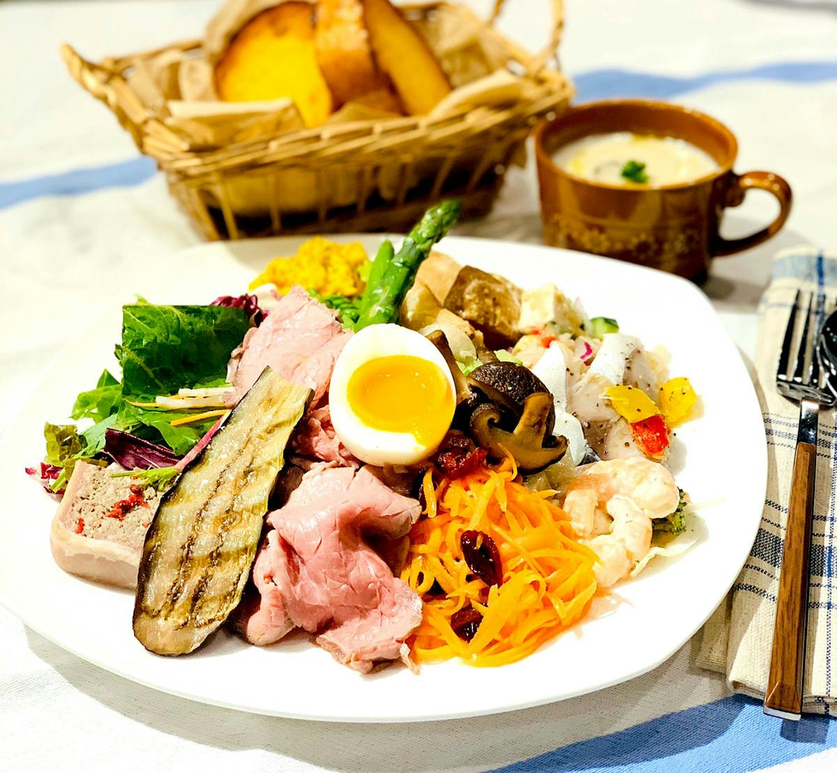 地元野菜を使ったサラダをはじめ、様々なデリなども、見て楽しく食べて健康に!をコンセプトにしたランチやフードメニューをお召し上がりいただけます。