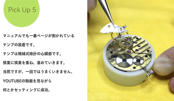 当社スタッフ(非時計師)が実際に組立をした際のリポートです。職人ではなくてもこのように組立られました。
