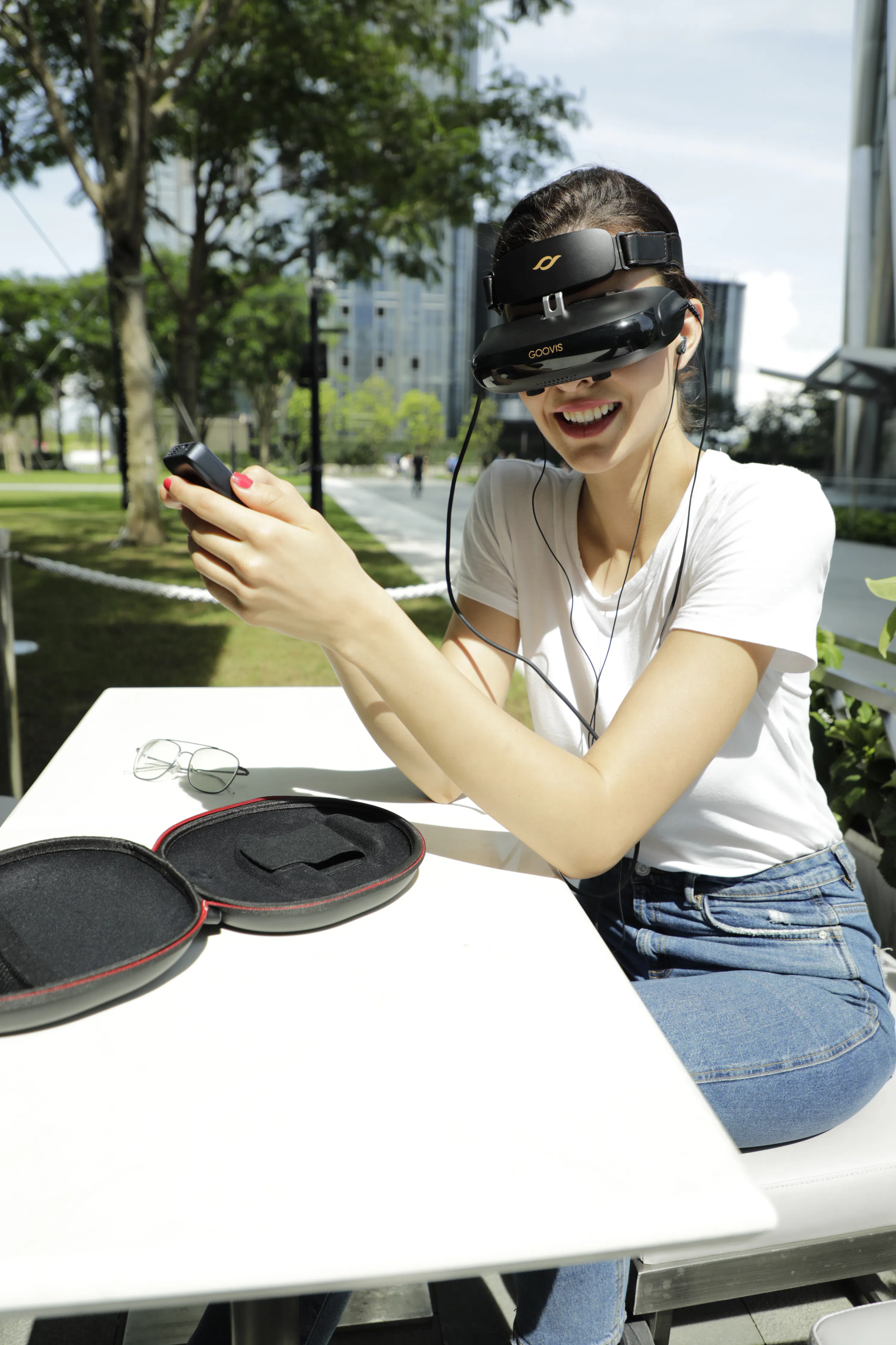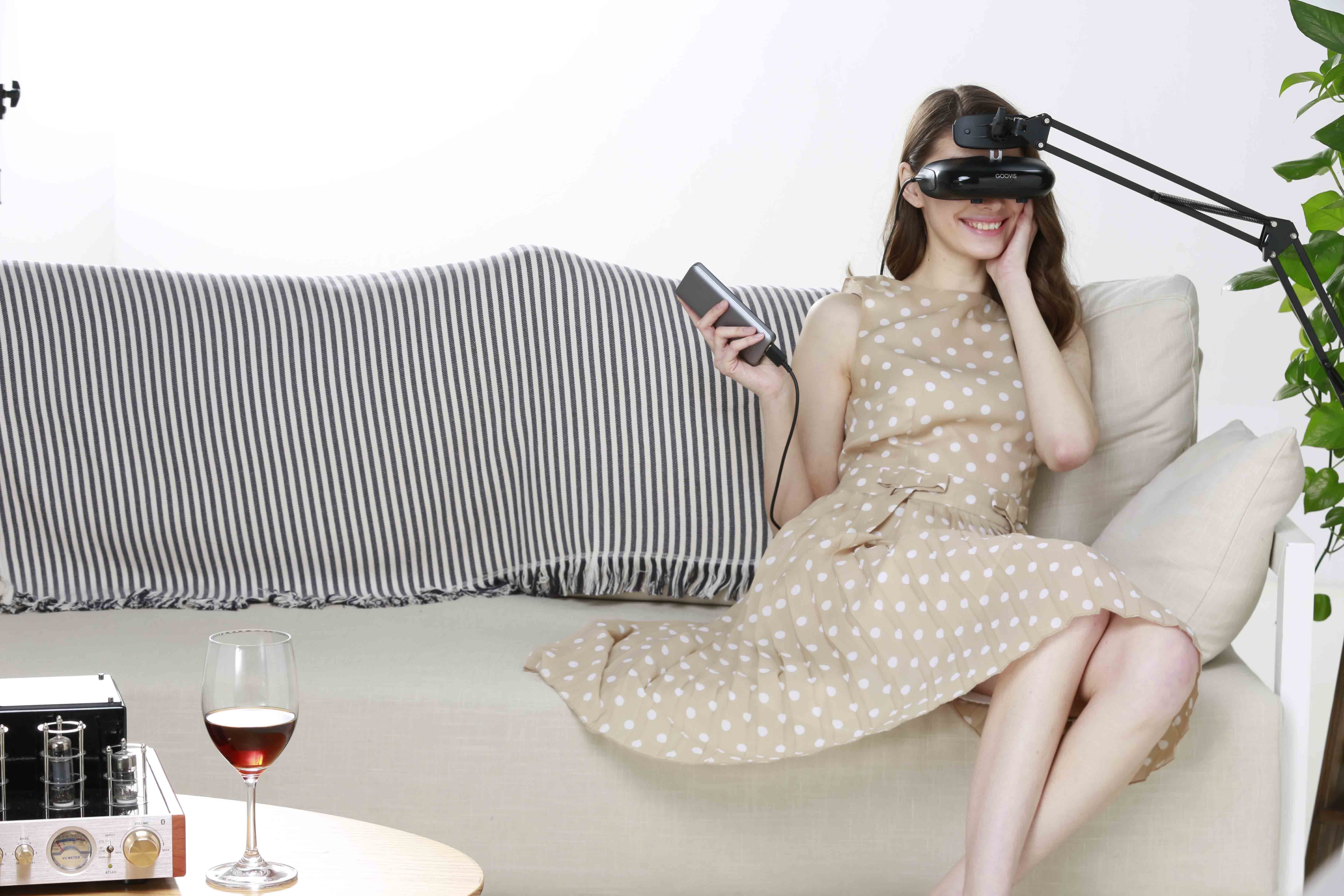 GOOVIS PROは、20メートルの距離に仮想スクリーンを投影し、実際の劇場のディスプレイの様にすることにより、目の筋肉の緊張をさらに軽減します。