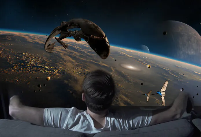 このGOOVIS PROなら物理的な広さも不要で大迫力の800インチ相当の画面で映画の世界観に没入できます。