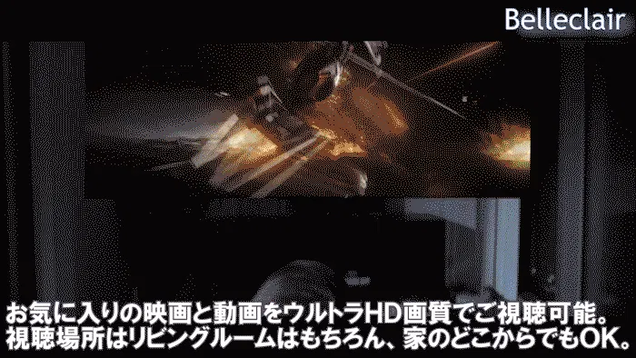 800インチ相当の映画館クラスの大画面で迫力の映像を楽しめます。
