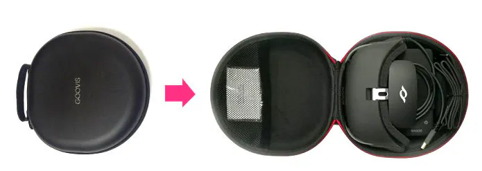 ヘッドセットとコントローラがコンパクトに収まる設計になっていますのでGOOVIS PROの保管にもお役立て頂けます。