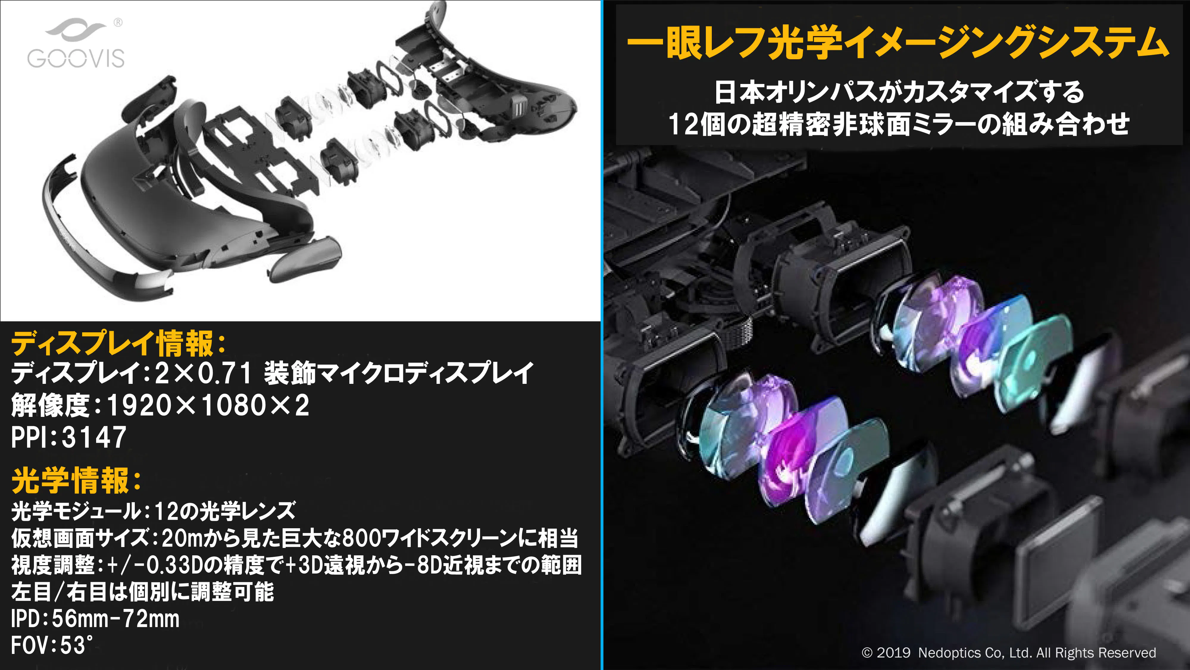 GOOVIS PROは、PPI 3147で0.7インチのツインM-OLED 1920 x 1080ディスプレイを使用しています。