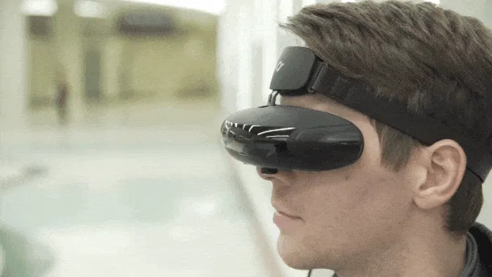 このGOOVIS PROならヘッドセットの画面部分を上に軽くあげるだけで周りの状況を確認することが可能です。