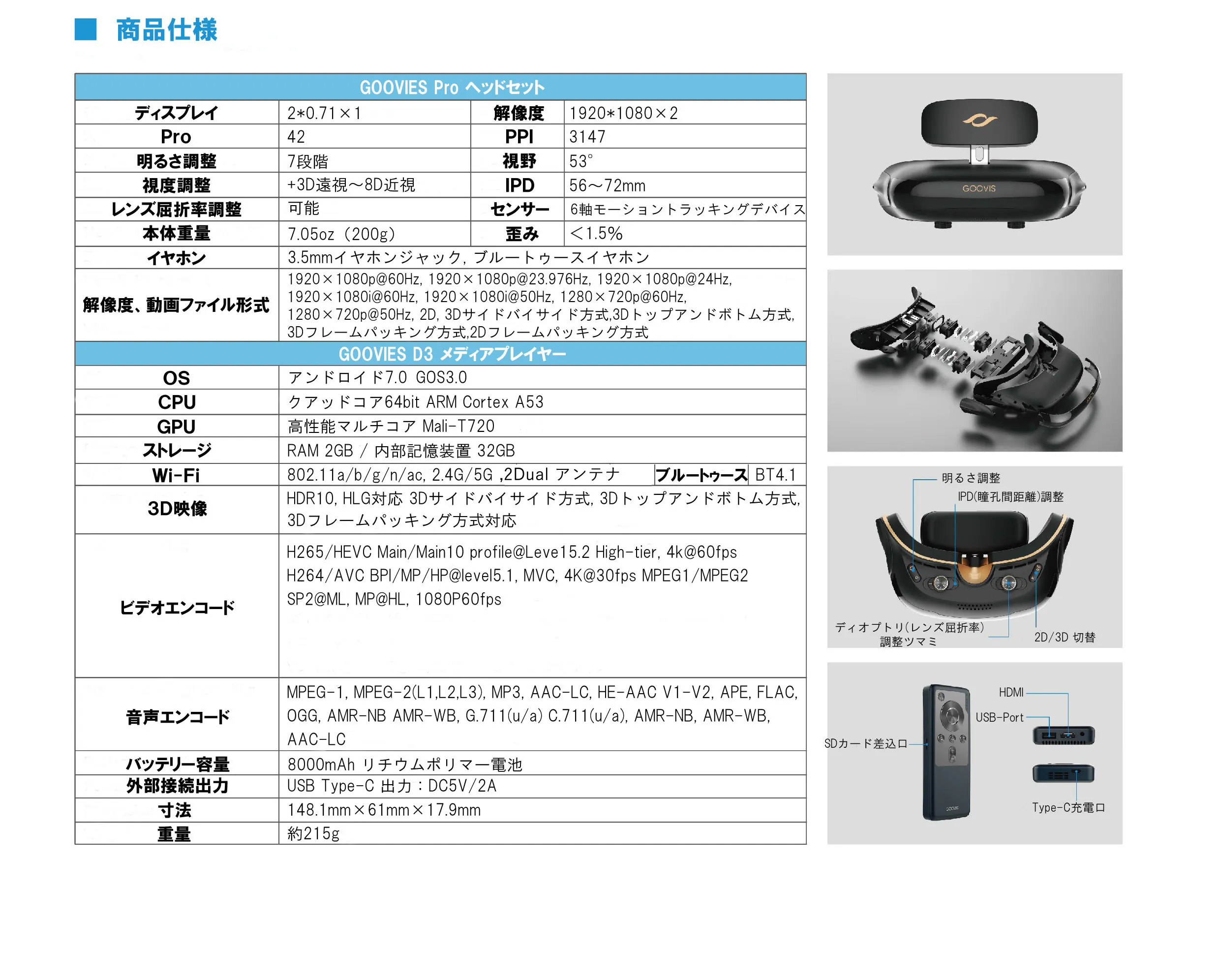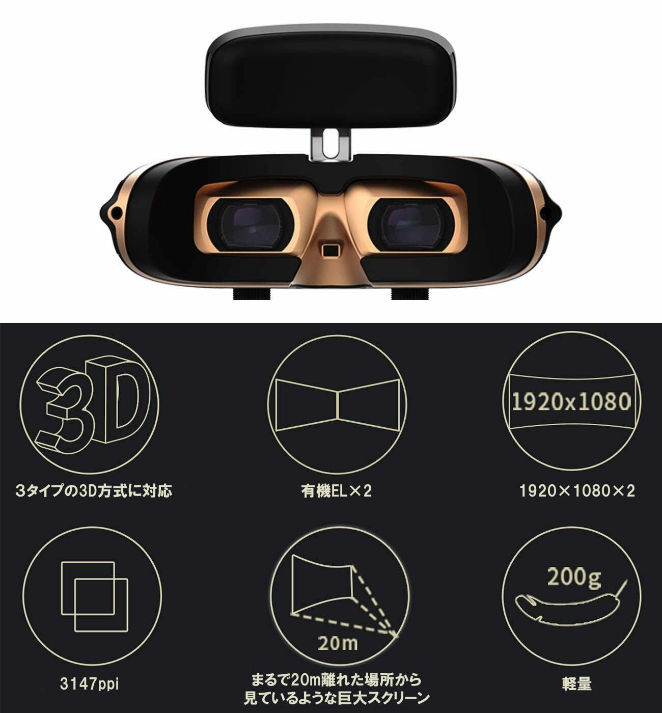 ・1920 x 1080 x 2のフルHD, 最大5時間再生, Android7.0 OS, 内蔵ストレージなど、様々な機能を搭載。