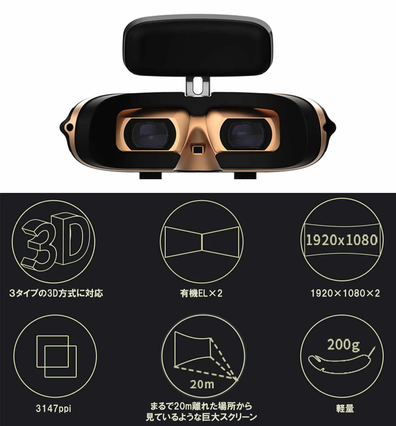 このGOOVIS PROは画像を美しく映し出すソニー有機ELマイクロディスプレイを採用し3147PPIの高解像度を実現しています。