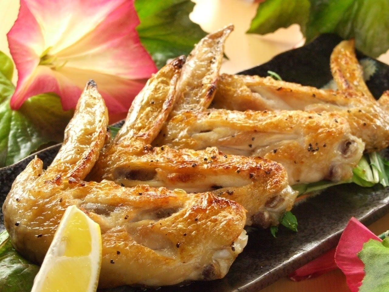 焼き物の大将は骨付きもも肉のロースト!揚物は秘伝のタレでつけた唐揚げ等々、さまざまな鶏料理をご用意しております。