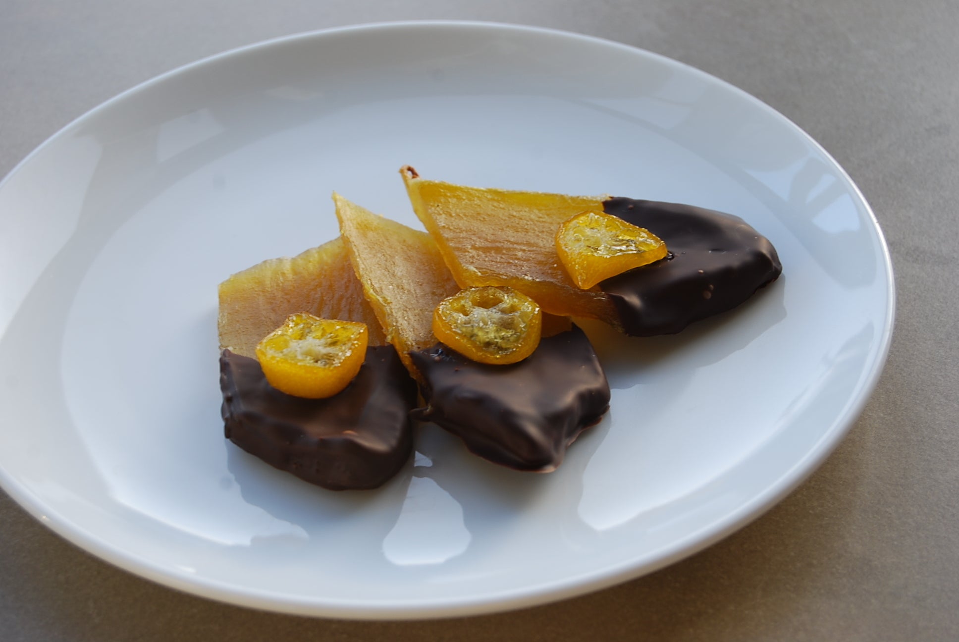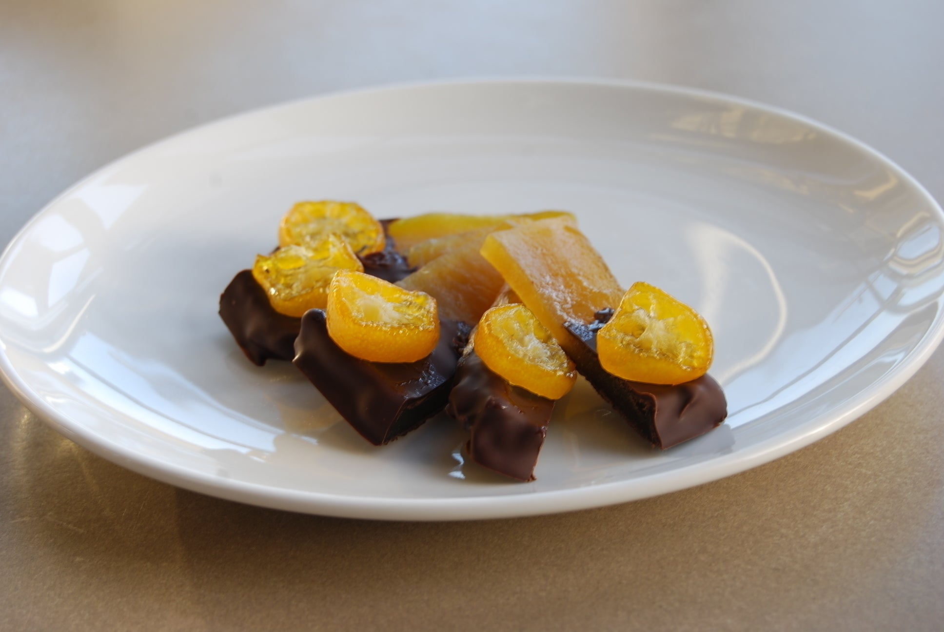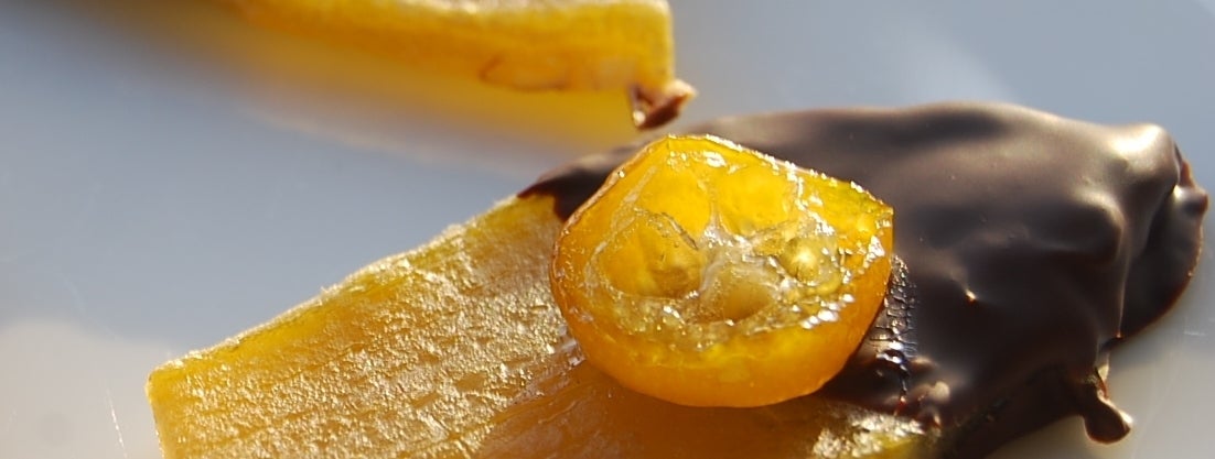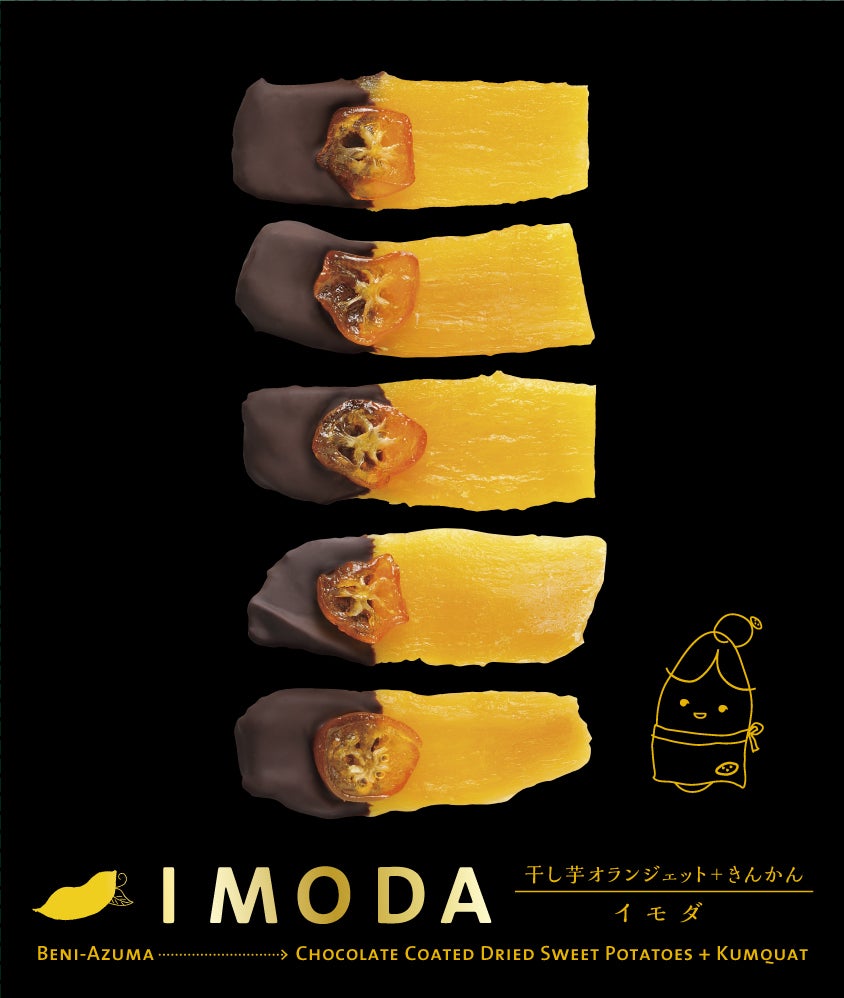 干し芋が陳列されている売り場は何となく暗い、美味しいのに、身体にとても優しいのに、もっと晴れやかな売り方があればいいなと思ったのがきっかけでした。干し芋を宝石に変えるにはどうしたらよいか?試作食を1年繰り返し行った結果勅レートのドレスを着せて金柑のブローチを付けて華々しくデビュー。