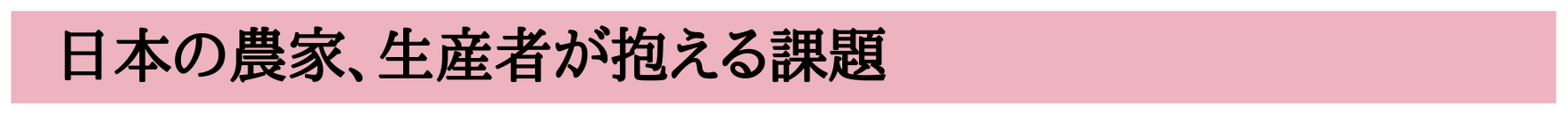 しかし、そういった食の担い手は、高齢化、自然災害の増加、大量消費に適さない商品、日本人口が減少傾向であることなど、短期的・長期的に様々な課題に直面しています。