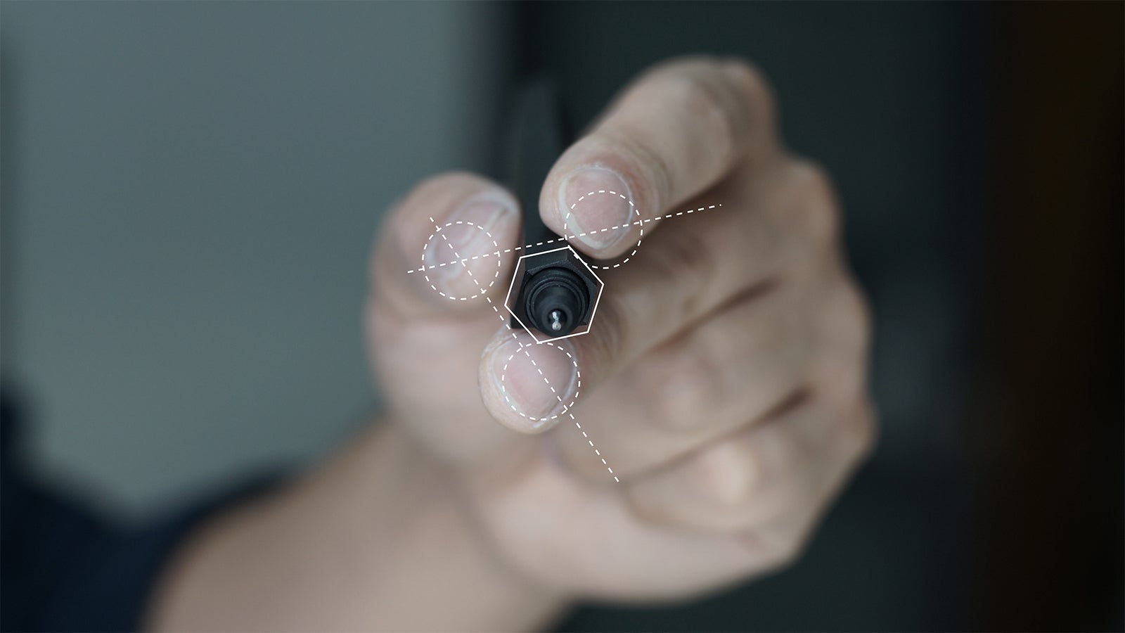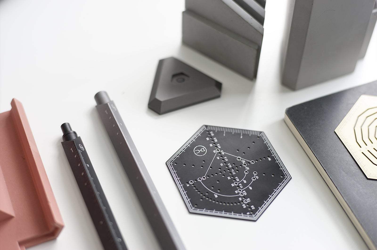 TP²のデザインは、シンプルな幾何学模様から生まれました。三角形と六角形がペンの軸を構成。二等辺三角形がスタンドの役割を果たしています。対称性のパターンがバランスを生み、デザインのバランスは調和、秩序、そして美を生み出します。