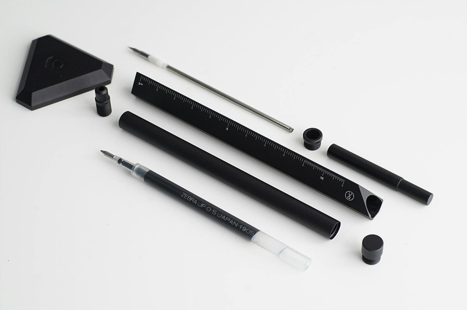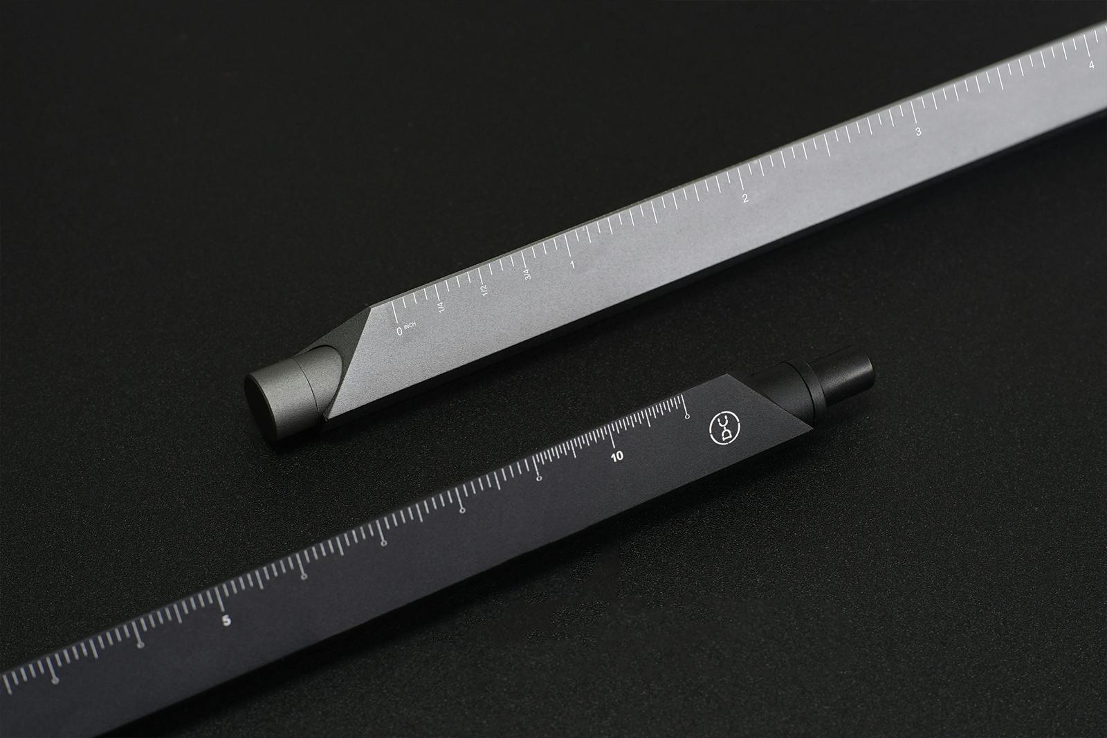 キャップはペン部分を立てられるほか、キャップを付けたままでも筆記でき、測ったり線を引いたりできる定規として設計されています。