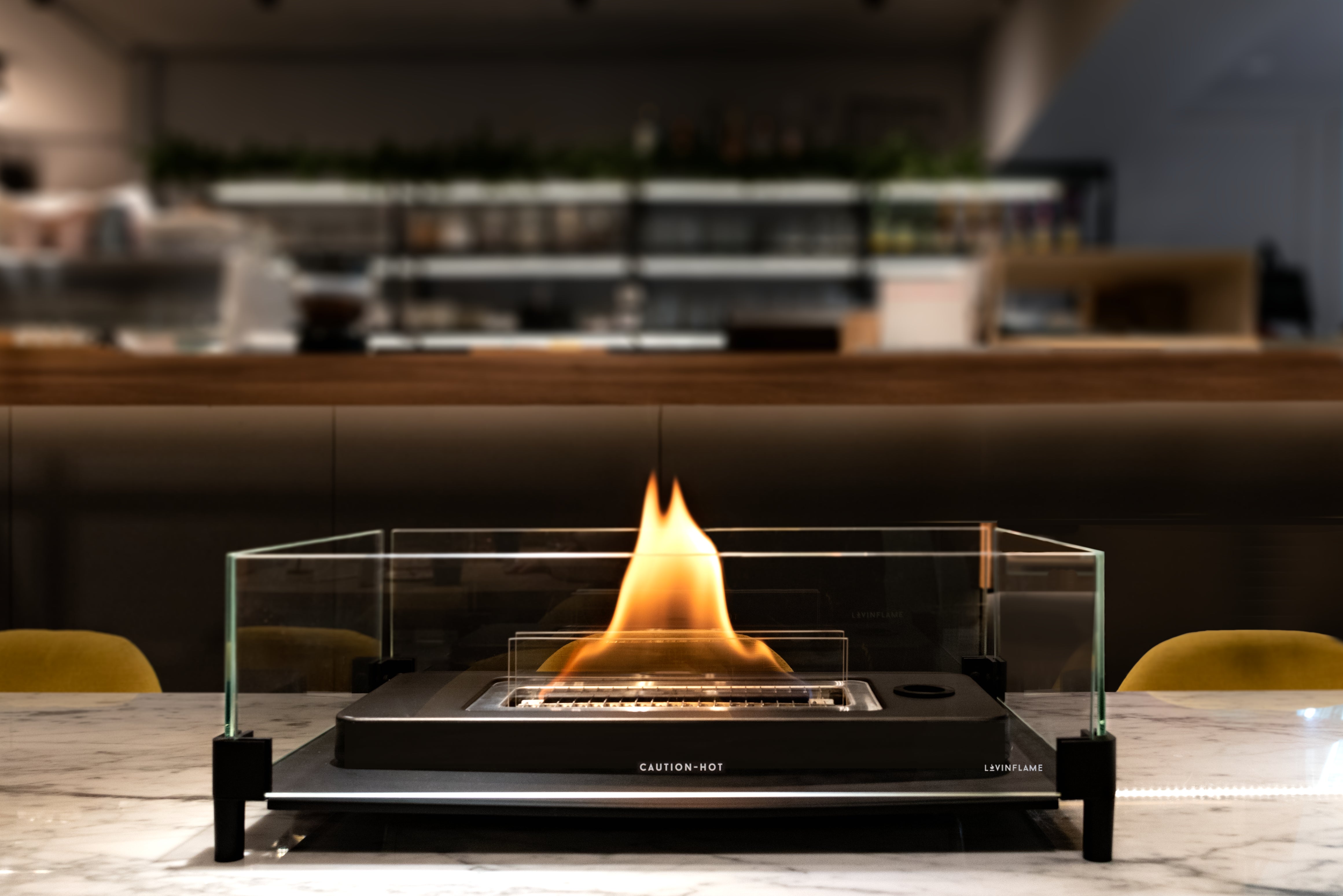 Lovinflameのテーブルトップ180はその名の通り、テーブルに置いて使えるサイズの暖炉。