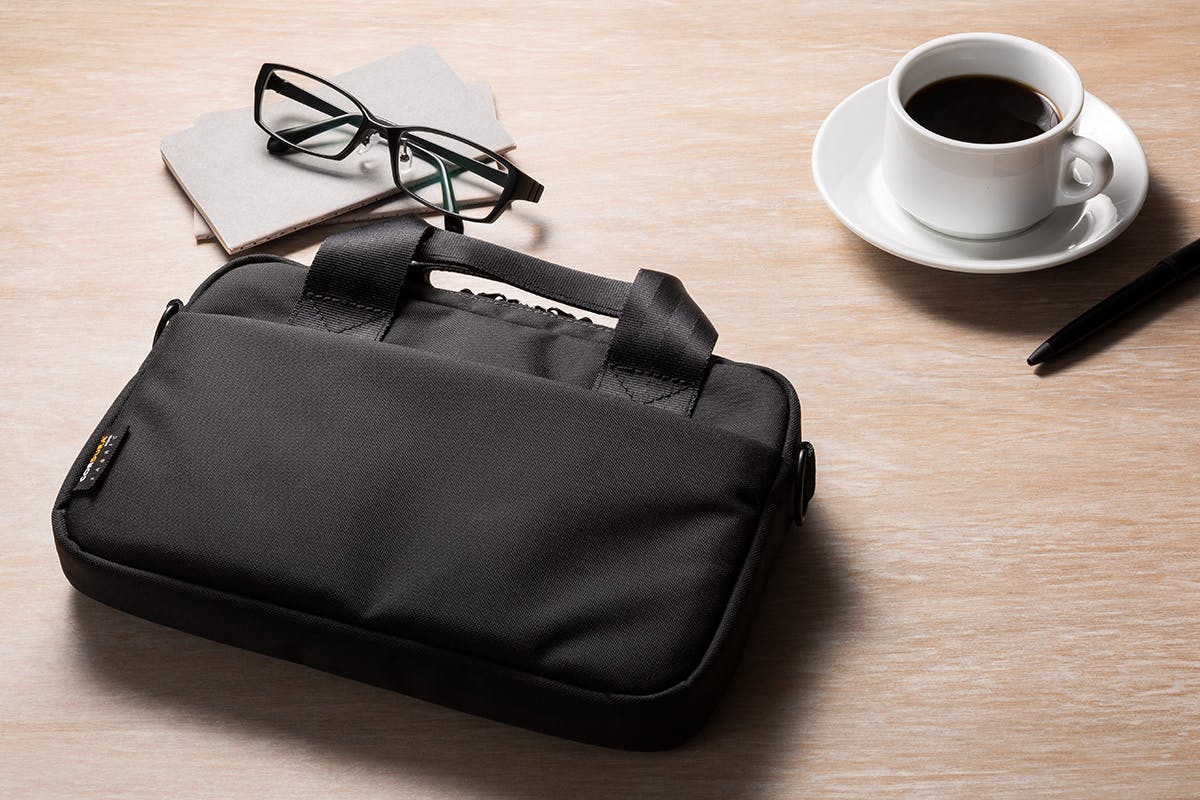 小さなブリーフケースのため、カフェテーブルに置いても場所を取りません。