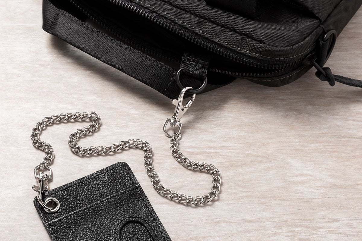 メイン収納部分にはポケット1個とDカン1個付き。モノの仕分けがし易く、Dカンには鍵やパスケースの取り付けが可能です。