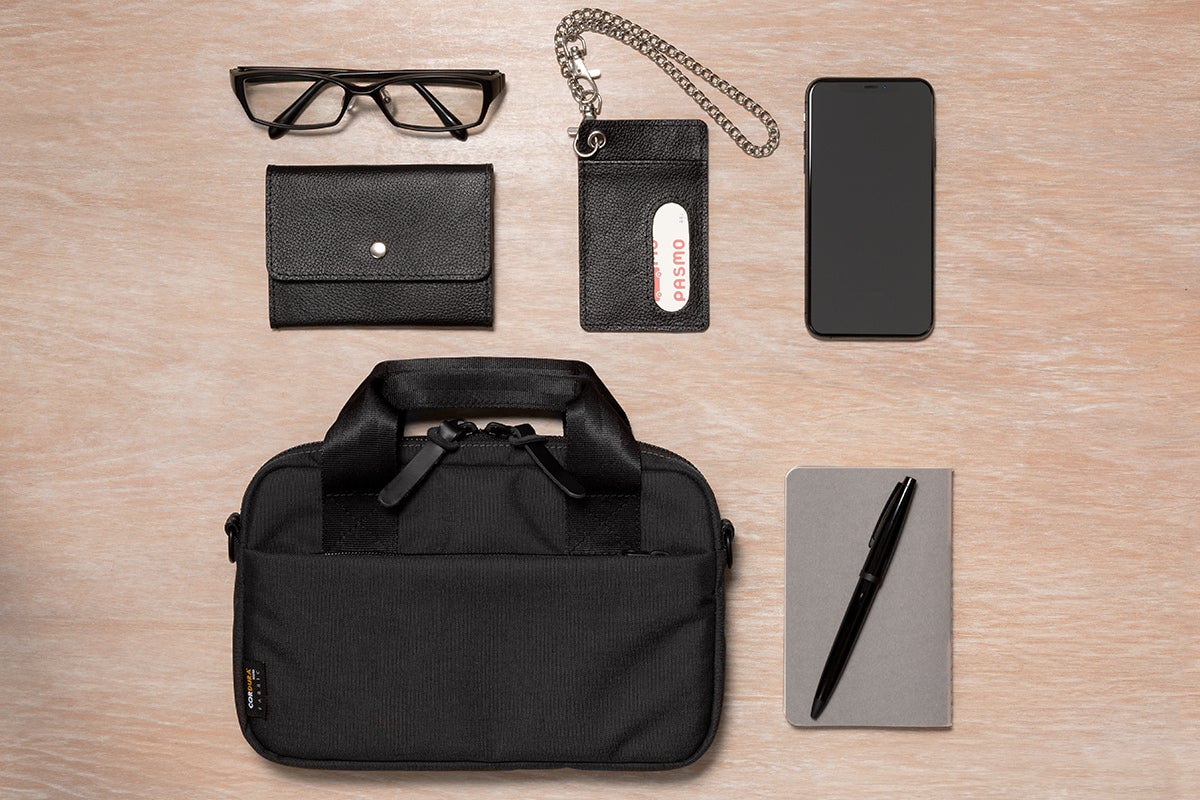 持ち物は最小限で、とは言っても日々の通勤シーンで持ち歩くものはすべて入ります。