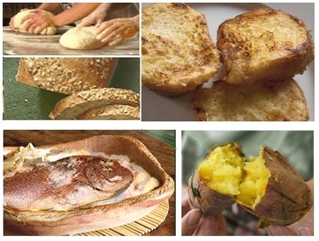 カリッと、皮まで美味しいパンやお芋の石焼き。大振りの鯛は塩釜焼きに・・。どれも簡単素朴な賄いですが、食材の旨味をそのまま生かした料理が色々と楽しめます。