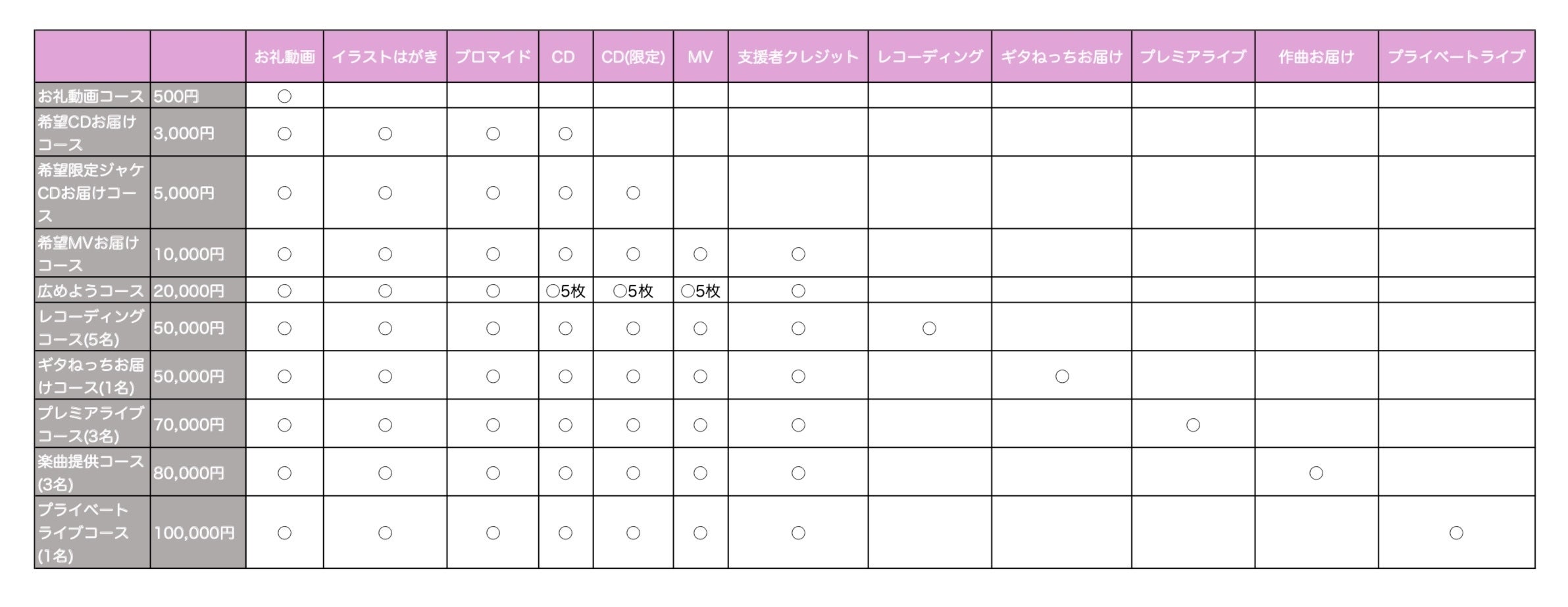 ・一部のリターンに「CDとMVのクレジットのお名前記載」がございます。支援時備考欄にお名前(HN)をご記入下さい。