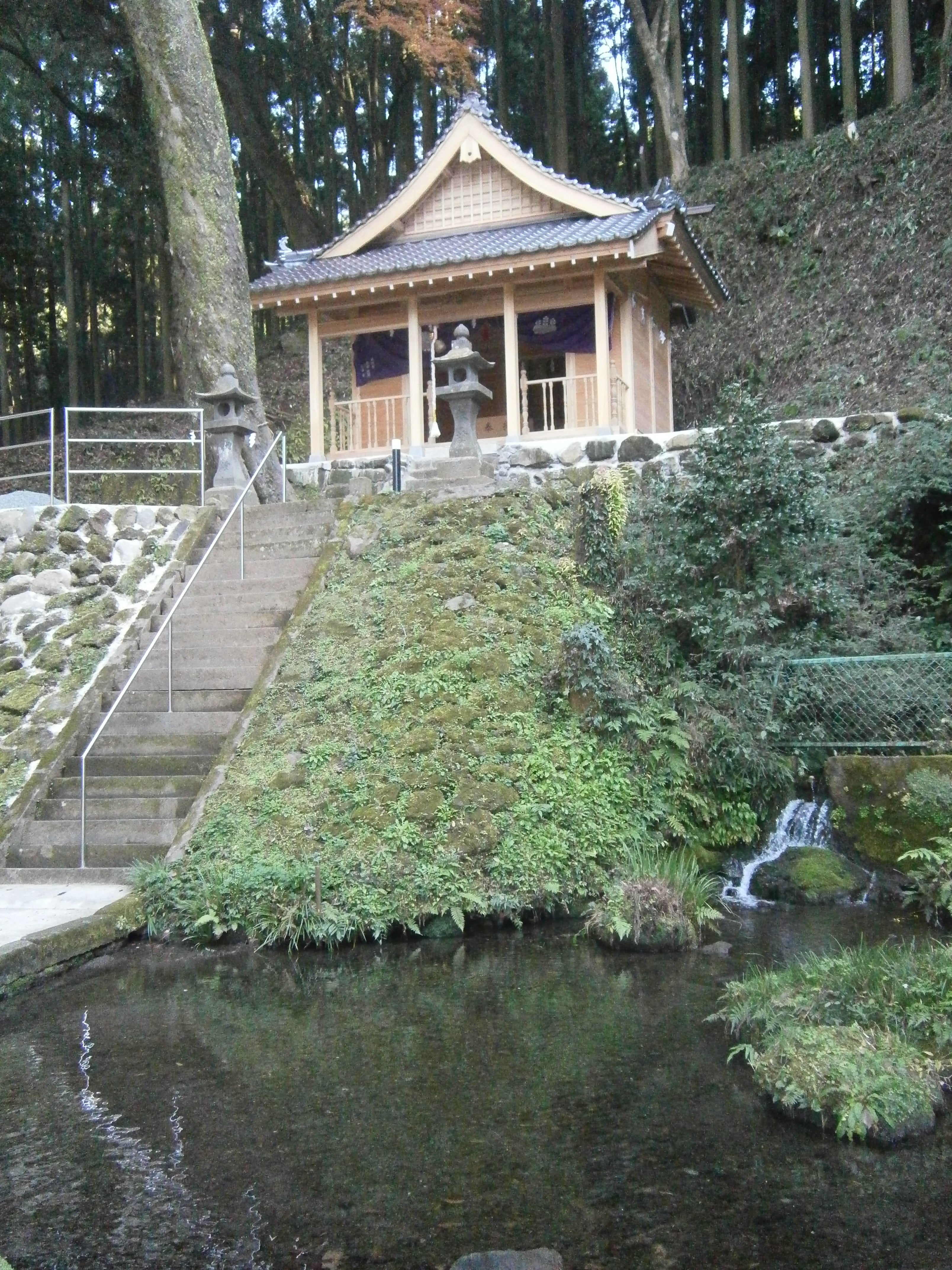 ↑ 豊かな水源地、震災前の潮井神社。益城町は神社と自然が共存する土地。