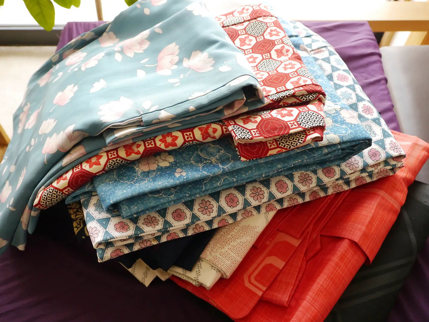 このように、落ちない汚れがついていたり、昔の女性の身長に合わせて仕立てられているので、ご自身で着るには丈が短いということも多く、長年箪笥に眠っている。でも、捨てるのはもったいない!という着物が、私たちのもとに集まってきます。