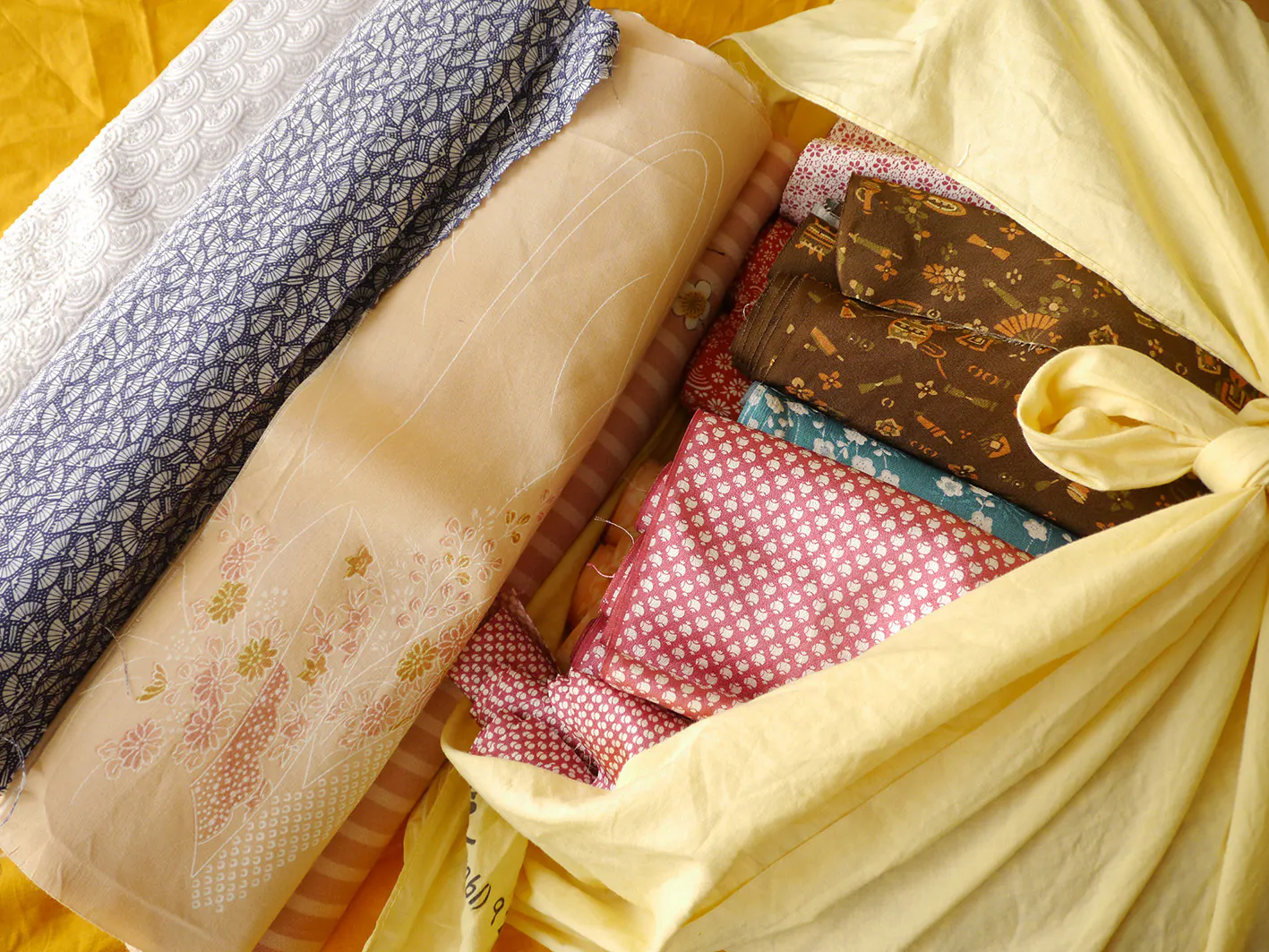 着物の「解き」「洗濯」「陰干し」「まとめ」までをスタッフそれぞれの自宅で作業しています。